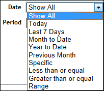 •Date: Select the time frame from which you want to view project transactions. Additional date filters may appear depending on what option you choose.